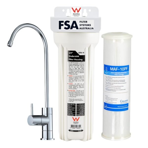 single Compact Undersink Caravan / Rv / Tiny Home Water Filter System with 0.5 Micron Lead Heavy Metal Reduction Carbon for Mains