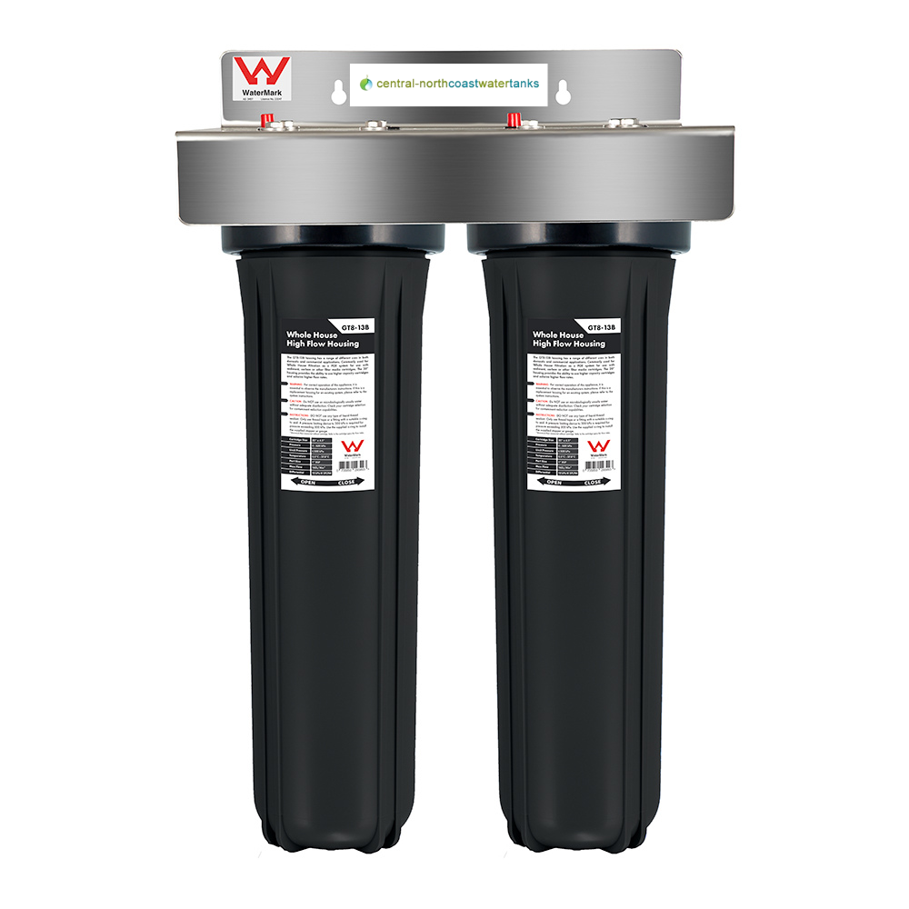 WaterMark Certified high performance Twin Whole House Water Filter System 20″ x 4.5″ High Flow
